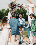 With the court houses closed, we reached out to my Dad's best friend, Jeff, to officiate our wedding and invited my friends, Nick Cosmic to photograph & Katherine Tobler for moral support (needed some outside energy bc at this point we had been quarantined with the only attendees, my family, for just less than two very #tense months) as we got in gear for the little ceremony that would be our big day. Ross built an arbor, I ordered our formal wear, we reviewed our whataburger favs & on the day of the big wind (May 1, 2020) in my parent’s backyard, with my fam in person & Ross’s on zoom, we said “I do” to being quarantined in each other’s hearts for forever 🍀💍